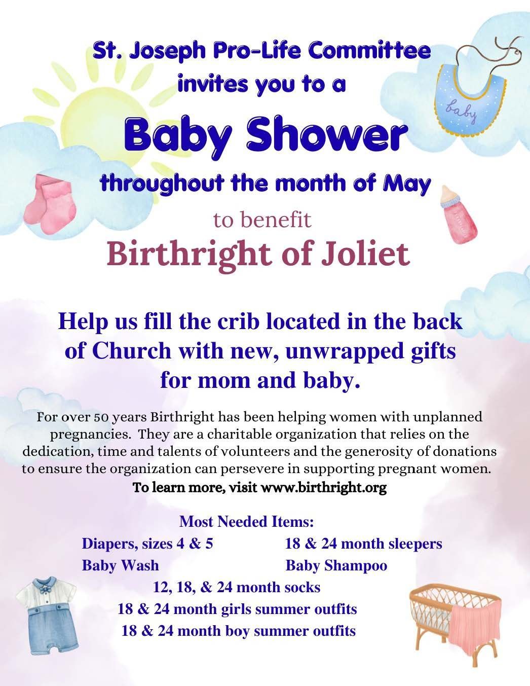 For more information call the rectory. As always, thank you for your financial and prayerful support of St. Joseph Parish.