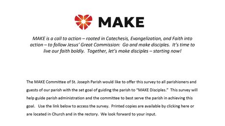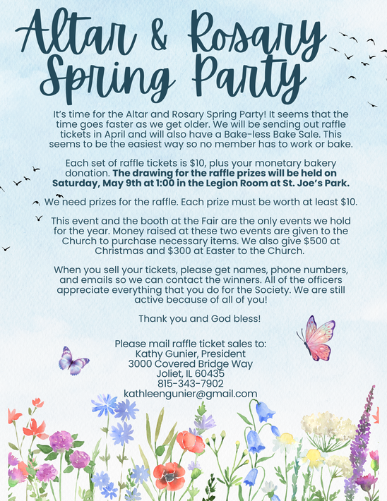 For more information call the rectory. As always, thank you for your financial and prayerful support of St. Joseph Parish.